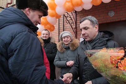 Новоселы попросили Алексея Малютина передать благодарность застройщику, и пригласили исполняющего обязанности мэра на чай.