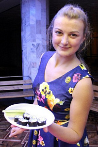 На вечеринку пришли любители танца буги-вуги и японской кухни. Для начала профессиональный повар провел мастер-класс по изготовлению роллов, а затем было их поедание и танцы.