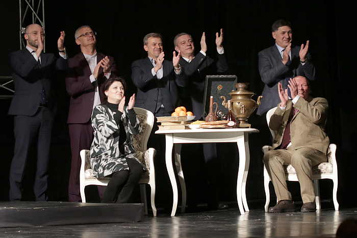 Открыла фестиваль небольшая интермедия с участием руководителей всех театров. Они собрались за общим столом, каждый принес свои национальные угощения. Именно в этом и заложена идея фестиваля – все театры разные, но объединяет их русский язык и русская культура.