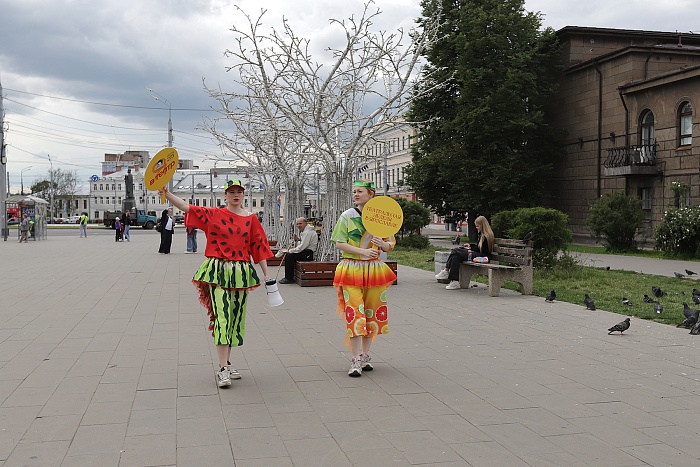 Сегодня артистов бродячих театров, мимов и аниматоров до 20 часов можно встретить на Волжской набережной, улице Революционной, на Первомайском бульваре, площади Волкова и Юности. Они приветствуют горожан, кто-то фотографирует артистов, кто-то делает с ними сэлфи.