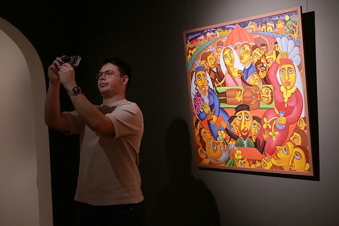 - Источник света здесь – в самих произведениях, - говорит куратор фестиваля Кристина Царевская. – Инна – автор, который очень свободно, очень легко работает с цветом. Цвет, как и форма, здесь имеет важное значение, не нужно дополнительно как-то высвечивать эти произведения, чтобы показать их внутреннюю яркость. Этот цвет несет в себе определенную нагрузку. Это внутренний мир художника, который вот так, всплеском, выходит наружу. Это разные состояния: где-то мы чувствуем безусловную радость, где-то можем задуматься о тревожных моментах.