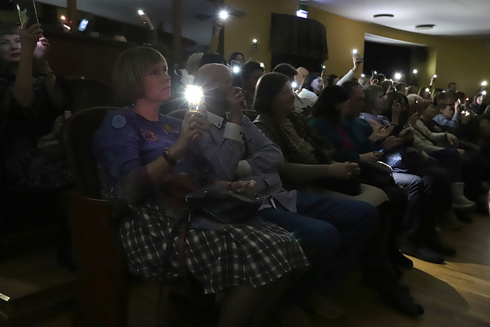 Суд заканчивается логично – вердиктом. Но вот его выносят зрители. Механизм голосования за то, заслуживает Айвазовский света или нет, – с помощью фонариков. По их количеству и решается, какой финал увидят зрители. То есть на одном показе он может быть один, на втором – другой. Вечный суд над Айвазовским продолжается?