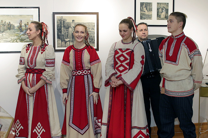 Первыми посетителями выставки «Гнездо моих отцов…» стали ярославские школьники. На открытии экспозиции выступили студенты колледжа культуры.