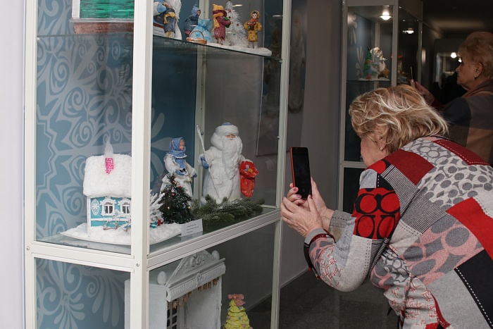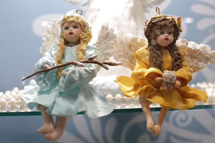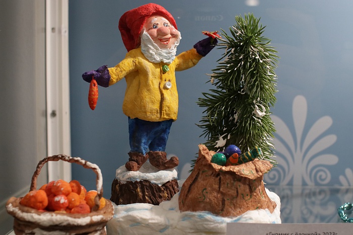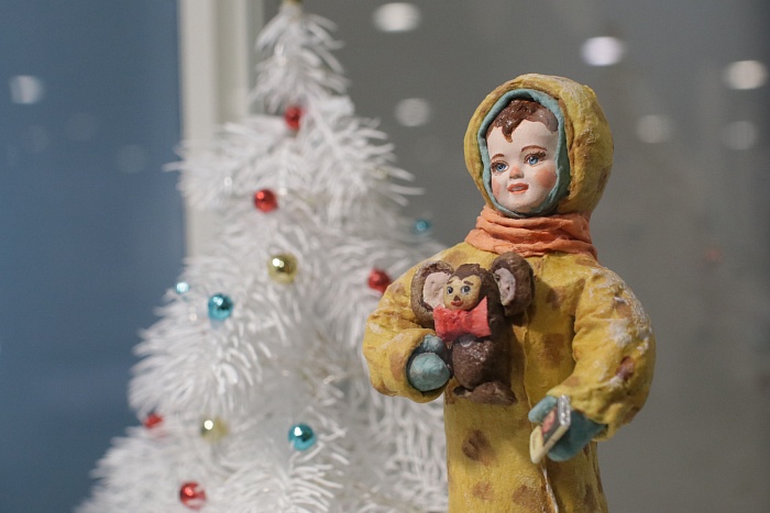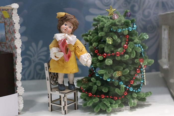 Татьяна Славкина уже несколько лет создает елочные игрушки из ваты и необычные миниатюры, переносящие ярославцев в мир детства: копии домов, магазинов, двориков, детских площадок и парков. На выставке можно увидеть неброский двухэтажный дом с палисадником из детства мастерицы и крошечные домики, которые легко помещаются на ладони, но при этом имеют полноценную меблировку, а рядом с узнаваемым киоском «Союзпечать» сидит кошка размером с горошину.