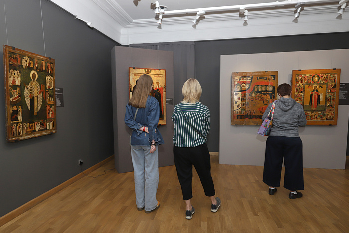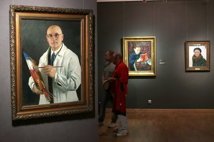 Второй раздел выставки – это иконы из собрания Ярославского отделения Центральных реставрационных мастерских. Третий зал – портреты. В экспозицию вошли и портреты членов семьи художника. А подлинным украшением выставки стал знаменитый «Автопортрет с палитрой». Эта работа отражает представление Грабаря о своем предназначении в жизни – самоотверженное служение искусству.