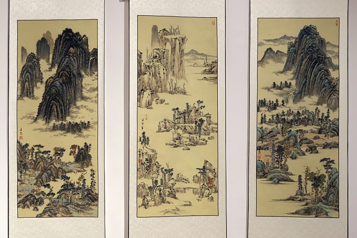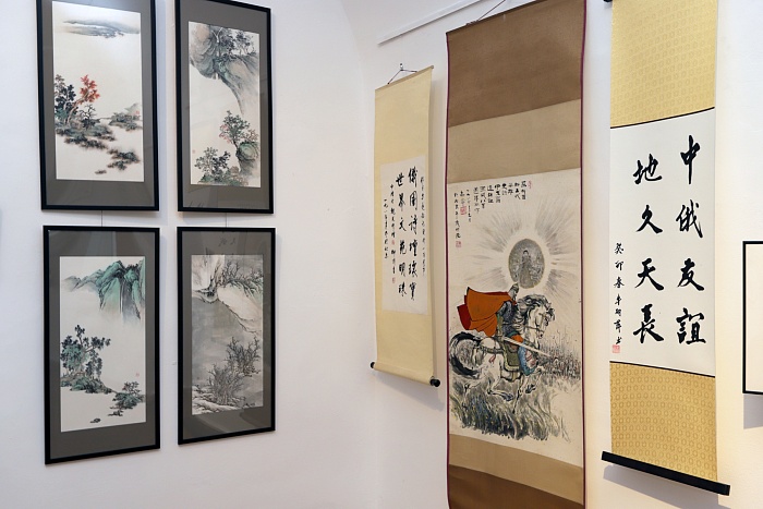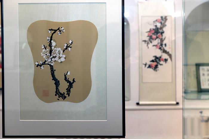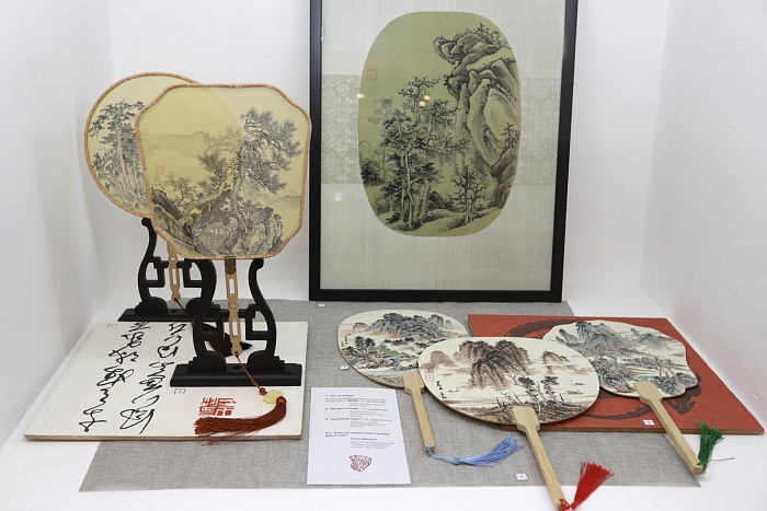 К свиткам добавилось более 70 предметов из коллекции «Первой московской галереи восточной живописи». Это вертикальные свитки и картины в рамах, малоформатные веера, каменные печати, камни «гунши» и традиционные инструменты художника – кисти и тушечницы.