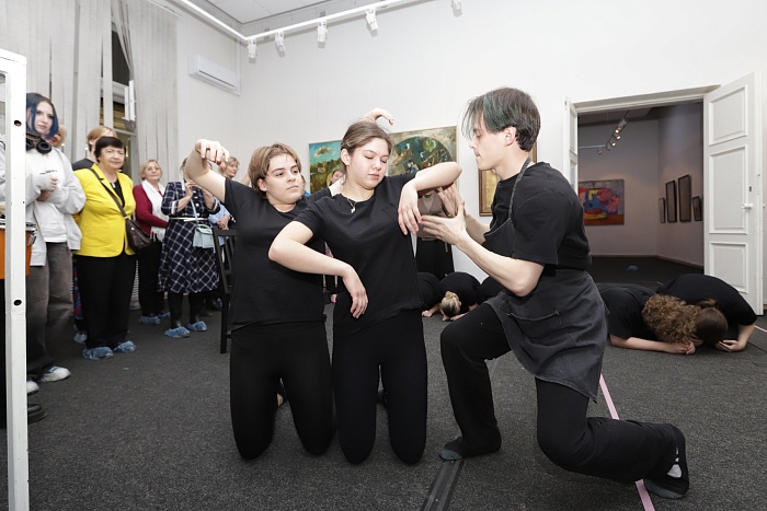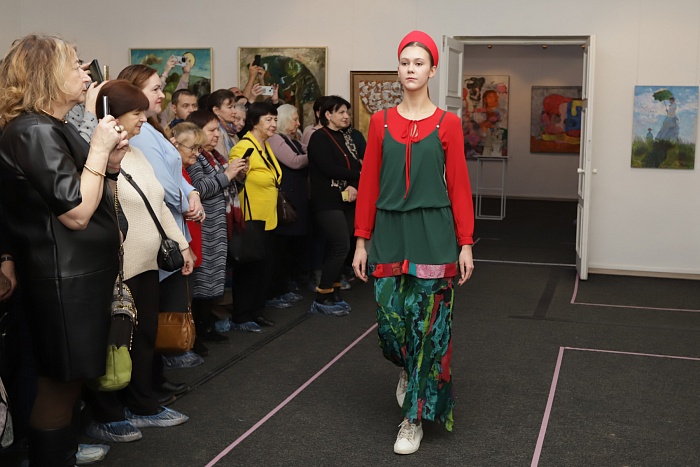 На открытии выставки гостей ждали сюрпризы: творческие этюды на тему творца в искусстве представили студенты театрального института. Также прошел показ авторской коллекции одежды.