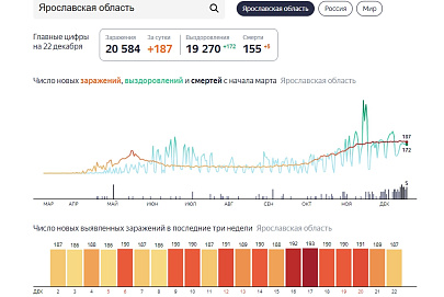 Заболели ковидом за минувшие сутки еще 187 жителей Ярославской области. Это меньше, чем днем ранее. Всего с начала эпидемии заболели 20 584 человека.