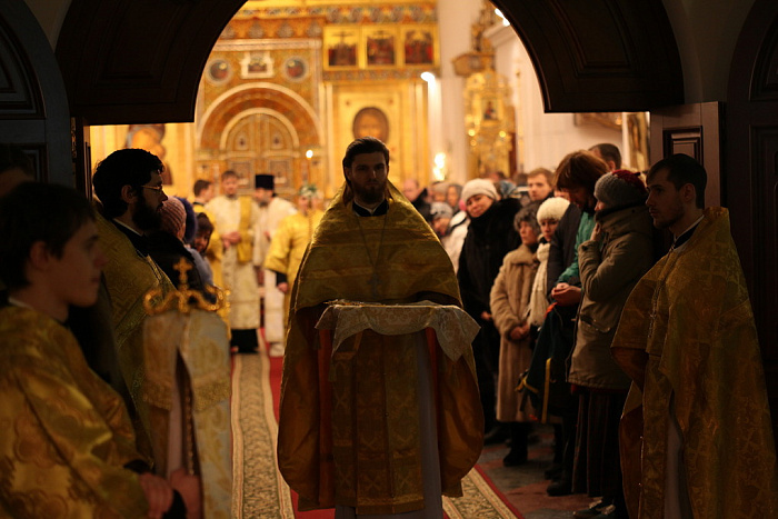 Божественная литургия в Успенском кафедральном соборе Ярославля началась в 23.30, ее провел митрополит Ярославский и Ростовский Пантелеимон. Несмотря на сильные морозы, которые стоят в эти дни, храм был полон. Среди высоких гостей в церкви были первый заместитель председателя правительства области Виктор, Костин, исполняющий полномочия мэра Ярославля Владимир Слепцов. Вот что сказал Владимир Витальевич журналистам, когда вошел в храм: