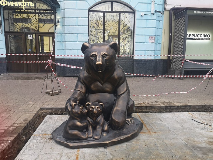 Еще одна скульптура и снова в виде медведя появилась в Ярославле. Это медведица с медвежатами, ее установили на улице Кирова.