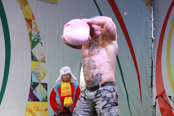 Сегодня, в заключительный день масленичной недели, в Ярославле на Советской площади прошло шоу специалиста по пауэрлифтингу и бодибилдингу, участника команды профессиональной лиги силового экстрима Михаила Сидорычева.