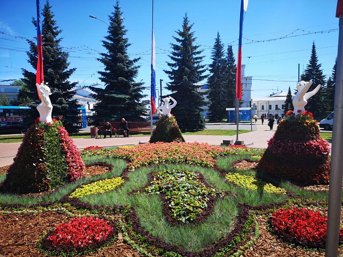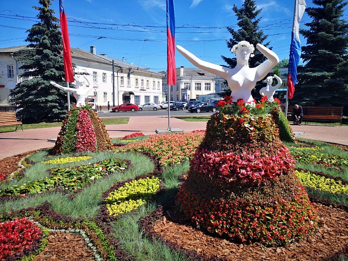 На площади Волкова в Ярославле появилась театральная клумба