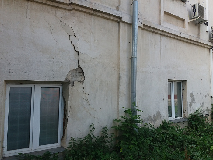 Как сообщил первый заместитель мэра Сергей Тарасов, собственник помещений, расположенных на первом этаже здания, провел земляные работы без разрешений со стороны департамента культуры, контрольно-надзорных органов. Он вырыл двухметровую яму, из-за чего расшатался фундамент, состоящий из булыжников. В силу особенностей его строения просто засыпать яму – недостаточно, поскольку булыжники друг с другом не скреплены.