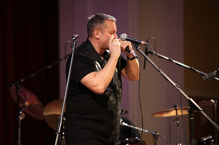 «Овердрайв блюз бенд» стандартно открывает вторую, филармоническую часть фестиваля, причем ярославский коллектив всегда рад затеять со слушателями конкурс «угадай инструмент». Его фронтмен и организатор Сергей Кузнецов начинал, как кларнетист, затем освоил саксофон, на прошлом фестивале сразил всех наповал губной гармошкой, а на сей раз… запел. В его исполнении прозвучал стандарт «Route 66» и хит Боби Маферрина «Don’t Worry, Be Happy». Естественно, в ритм-энд блюзовой обработке.