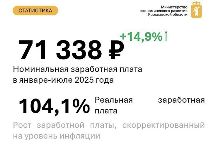 Средняя заработная плата в Ярославской области в январе-июле 2025 года составила 71 338 рублей. Об этом сообщили в Ярославльстате.