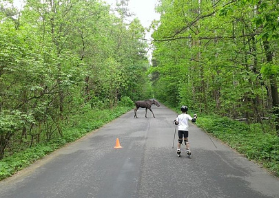 Наиболее сбалансированы они оказались у гонщика из ярославской команды SKI 76 Team Алексея Смирнова (на фото внизу), который выиграл у ближайшего преследователя – москвича Сергея Корсакова – восемь секунд. «На все про все» у нашего спортсмена ушло 22 минуты 34.2 секунды. При этом стартовал Алексей одним из первых – и практически все его прямые конкуренты могли равняться на результат нашего спортсмена. Но, судя потому, что это была уже третья победа Алексея в сезоне, обогнать его было бы проблематично даже лосю, если бы тот, допустим, освоил все хитрости искусства гонок на лыжероллерах.