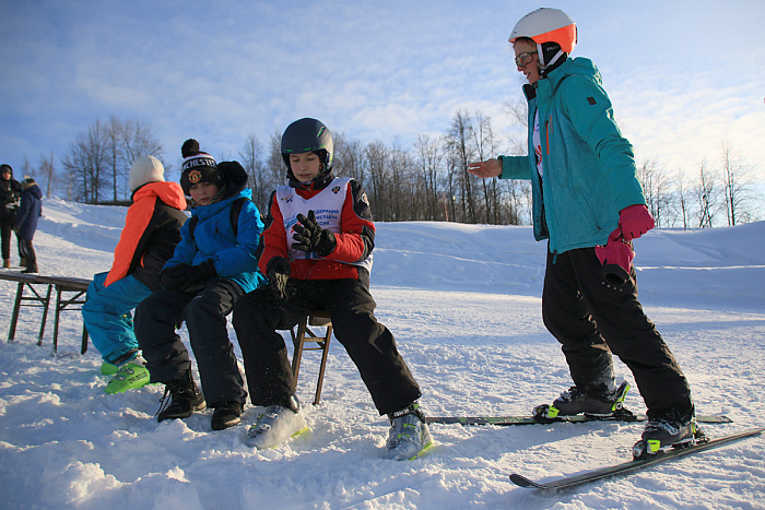 Сегодня на горнолыжном склоне парка Изгиб соревнования продолжаются.