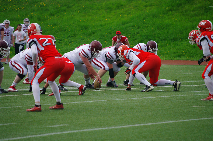 Первый тайм не радовал поклонников американского футбола избытком креатива на поле. Зрители гораздо чаще видели на нем желтые флаги, которые судьи выбрасывают, останавливая игру из-за нарушений правил. Так игра неспешно докатилась до перерыва, а «медведи» - до зачетной линии «бунтарей». Рисковать гости не стали, реализовав филд-гол. Так перед самым перерывом они повели со счетом 3:0.
