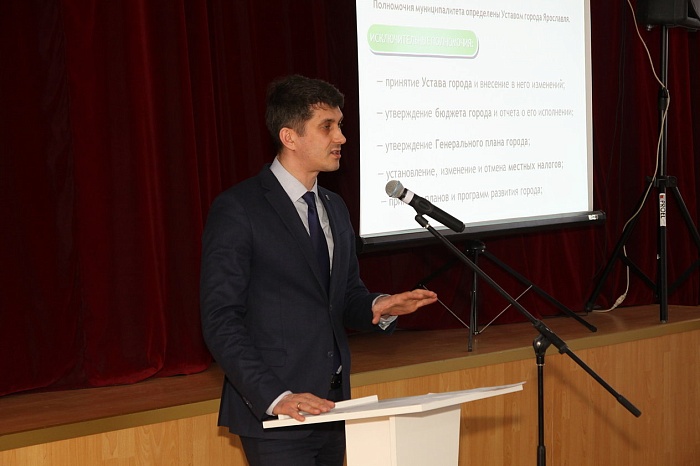 Кроме депутатов перед старшеклассниками выступил начальник управления по молодежной политике мэрии Ярославля Захар Кармилита. Он рассказал о различиях представительской и исполнительной власти, а также о том, как муниципалитет направляет контролирует работу мэрии города.