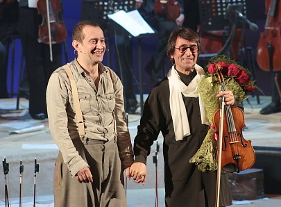Открыл фестиваль музыкально-драматический спектакль «Не покидай свою планету» по мотивам повести Антуана де Сент-Экзюпери «Маленький принц». Жанр определить трудно: это и драма, и цирк, и концерт, и перформанс одновременно. Очень неожиданная сценография режиссера Виктора Крамера. На подиуме расположен оркестр, за дирижерским пультом – Юрий Башмет. Над ними возвышается скала, на которой пламенеют видеозакаты и плещутся видеоволны. Пустыня Сахара – квадратная песочница. Планеты представлены в виде воздушных шариков с видеопроекциями, цветы в виде гаечных ключей…По словам Башмета, поначалу это был эксперимент. Но Константин Хабенский, который здесь и Маленький принц, и Летчик в одном лице, примерив на себя все персонажи Экзюпери, оказался человеком, не только способным сыграть несколько ролей, но и музыкальным. Хабенский не стесняется в присутствии самого Башмета управлять оркестром – просить его замолчать или, наоборот, вступить. Он играет честно, растрачивая себя без остатка. Летчик не по-сказочному, а по-настоящему умирает в пустыне Сахара и, как может, старается починить самолет. Но жажда, песок и жара делают свое дело – сам того не осознавая, он начинает грезить. В бреду он видит Маленького принца и ведет с ним философские беседы о дружбе и любви…