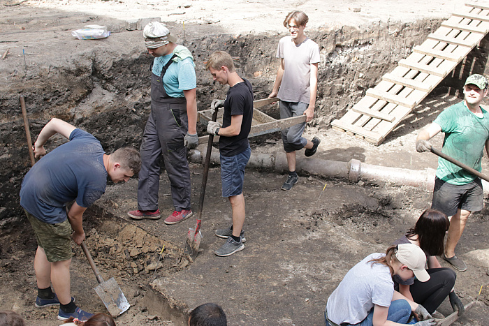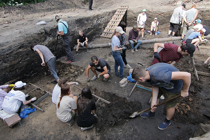 До 1777 года на месте раскопа было пересечение улиц. После постройки усадьбы перекресток немного сместился. Археологи надеются отыскать там следы мостовой.