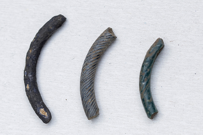 - Это уникальный случай: на такой маленькой площади мы уже нашли 29 фрагментов стеклянных браслетов, - говорит Владимир Праздников. – 26 мелких синих пастовых бусин.