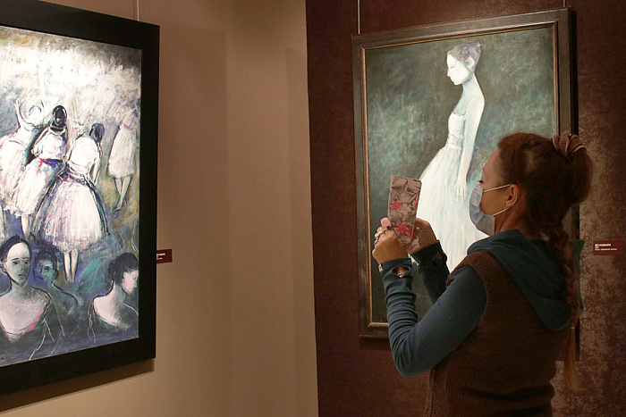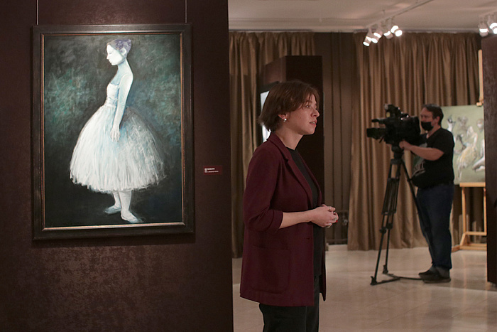 - Картины, представленные на выставке, посвящены одной теме – теме балета, - рассказала куратор выставки, сотрудник художественного музея Дарья Большакова. – Художник действительно влюблен в классический танец, и показывает нам не то, что видит обычный зритель: не сцену, не выступления. Все его картины посвящены закулисью – тому, что происходит во время репетиций, когда балерины отдыхают, готовятся к выходу на сцену, когда они входят в состояние своих героинь, обдумывают партию.
