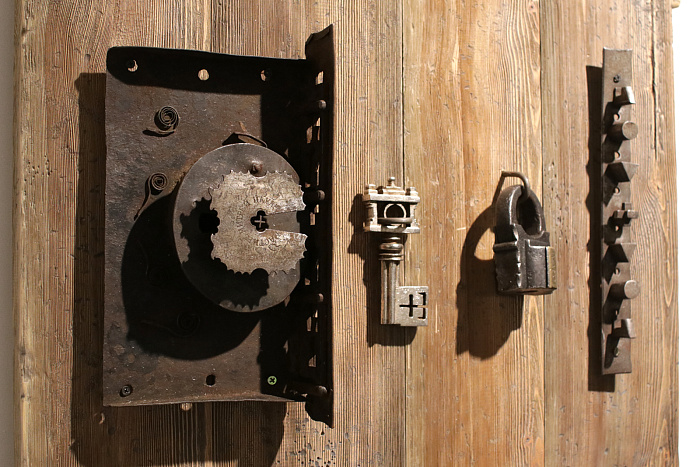Главные герои открывшейся выставки – замки и ключи к ним. Замочки крохотные, предназначенные для собачьих ошейников, замки огромные – секирные, замки в форме собак и львов, замки винтовые, замки с клином и даже музыкальные – всего около тысячи экземпляров! И все они – настоящие произведения искусства.