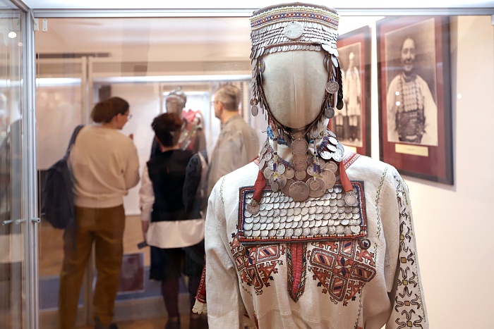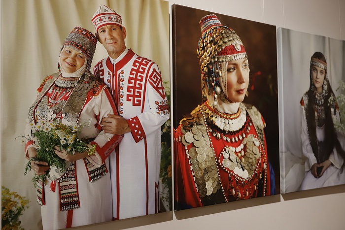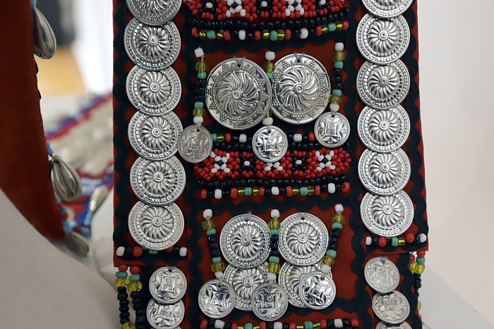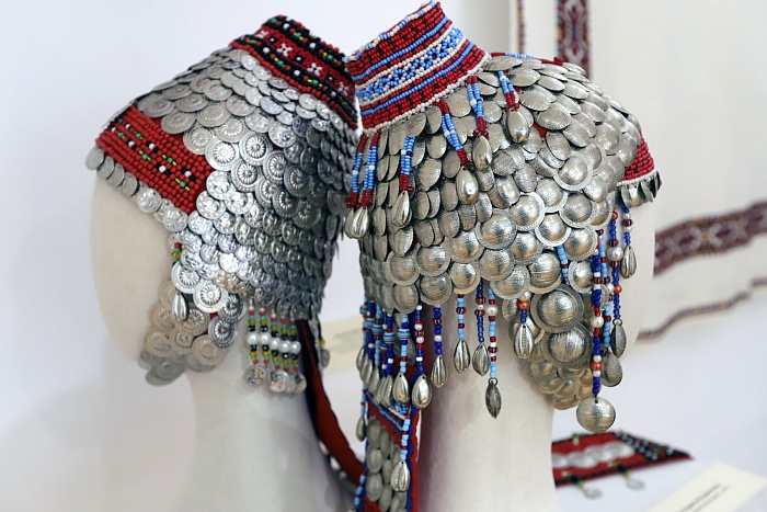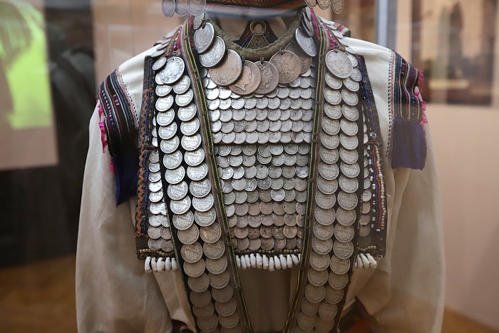 Роскошные национальные костюмы и необычные украшения – вот первое, на что обращают внимание гости выставки. Обилие серебряных украшений – главная особенность традиционного чувашского женского костюма. Монеты от копейки до рубля, а также их имитации из олова – нухратки служили не только декором, но и мощным оберегом. Масса полного праздничного наряда могла достигать 16 килограммов!