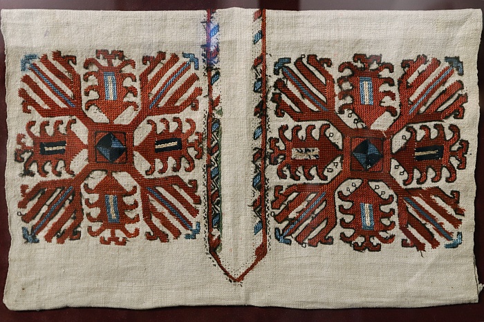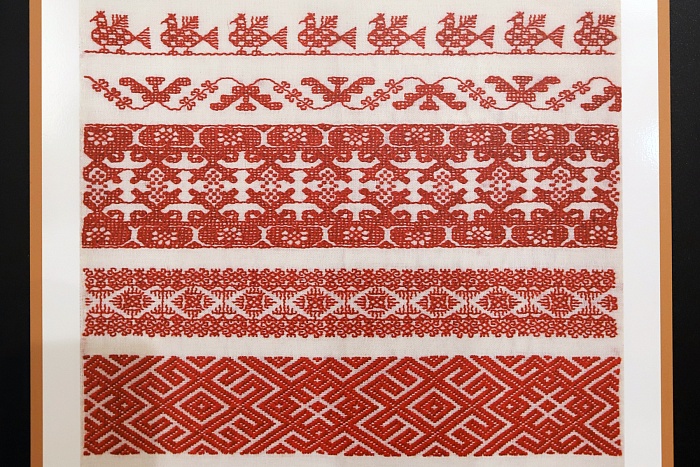 Немало внимания в экспозиции уделено вышивке. Вышивка на одежде выполняла функцию социального кода, рассказывая о статусе, семейном положении, количестве детей и месте жительства женщины.