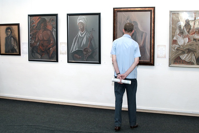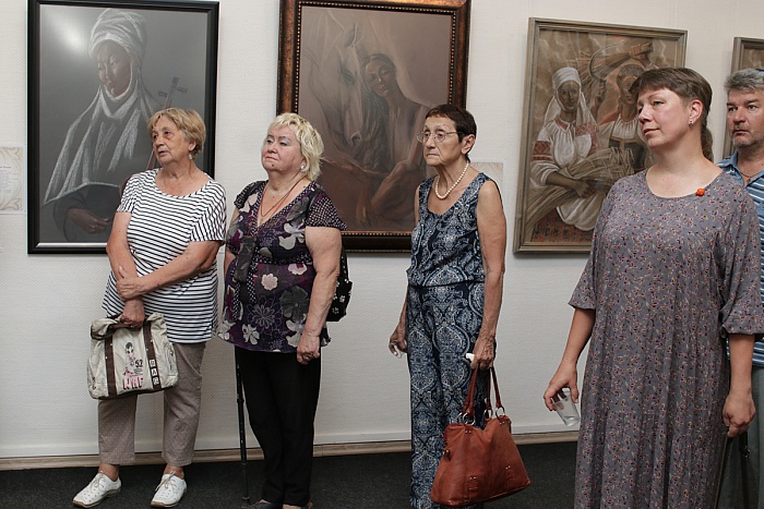 В Центральном выставочном зале Союза художников на улице Максимова открылась персональная юбилейная выставка Юлии Урсул «Ценности». Из всех жанров Юлия Урсул предпочитает реалистичный портрет.