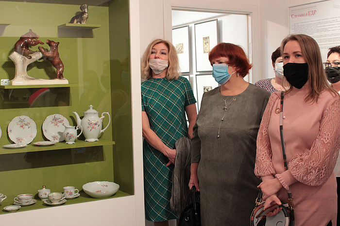 «У меня была такая кукла!», «Мне подарили точно такого же медведя в пять лет!», «Мама носила такое же платье!», «В нашей семье до стих пор есть такой чайный сервиз!» - ни один из гостей выставки не остается равнодушным. Среди сотни экспонатов – самая молодая часть коллекции музея: фарфор, костюмы, игрушки 1950–1980-х годов с маркой «Сделано в ГДР». В большинстве своем они поступили в собрание музея в 2020 году.