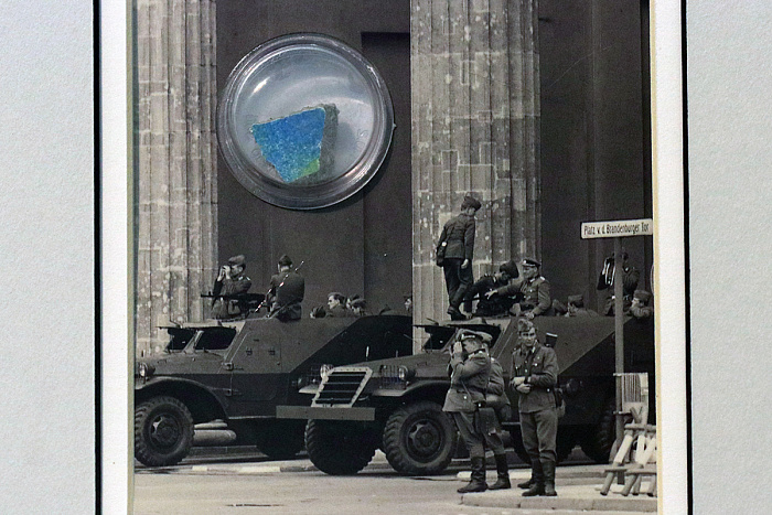 Есть на выставке и маленький символ разделения и воссоединения двух половинок Германии – кусочек Берлинской стены. В большой рамке на фоне фотографии 1990 года – крошечная круглая капсула с кусочком бетона, выкрашенного в синий цвет. Такой сувенир увезла в СССР семья военнослужащих, вернувшаяся на Родину после окончания срока службы в ГДР.