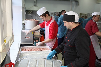 На предприятии, где готовят полуфабрикаты, поступающие в дошкольные учреждения, процессы приготовления практически полностью механизированы. Люди только контролируют процесс.