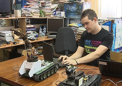 Имя своему роботу его изобретатель придумал на ходу. Название Мобильный автономный роботизированный комплекс - это уже для диссертации. 23-летний аспирант Демидовского университета Василий Кирнос с одной стороны, конечно, ученый. С другой стороны, у его Димы большие перспективы: в мечтах Василия - отправить робота на Марс.