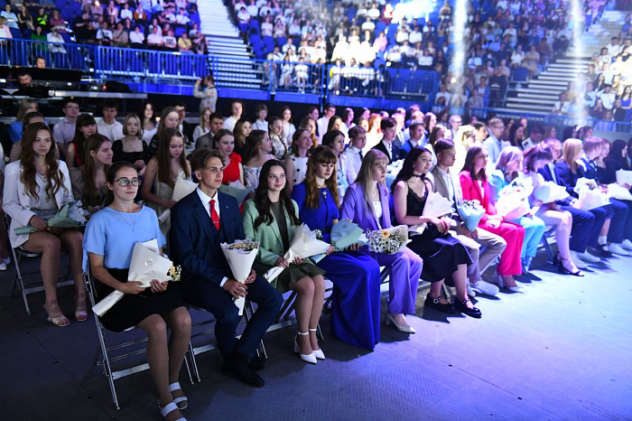 Для старшеклассников устроили яркое театрализованное представление с оркестром и масштабными номерами. После него прошла дискотека с выступлением ярославской кавер-группы «ТриждыДва» и диджея Johny Astro.