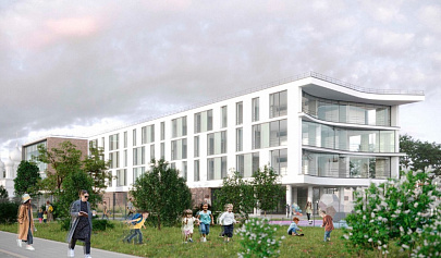 На пришкольной территории - баскетбольная и волейбольная площадки, три площадки для подвижных игр, а также территория для тихого отдыха. Родители смогут останавливать автомобиль в специальной зоне, чтобы привозить и забирать детей из школы. По периметру территории проведут озеленение.