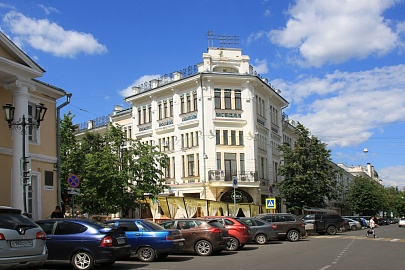 В начале ХХ века здания в стиле модерн строились в центре города. Дом на углу Кирова и Андропова обращает на себя внимание скромной красотой архитектурного решения. Гостиница с рестораном с громким названием «Бристоль» была построена в 1910 году по проекту Саренко. Угловая часть здания немного приподнята, а сам угол, если присмотреться, меньше 90 градусов: в этом месте улицы сходятся под острым углом!Наверху размещался ресторан. Фасад здания украшен типичными для модерна элементами: здесь и цветные изразцовые фризы наверху, и ленточный руст внизу. Гостиница «Бристоль» в Ярославле считается одним из самых интересных в стране образцов этого стиля архитектуры.