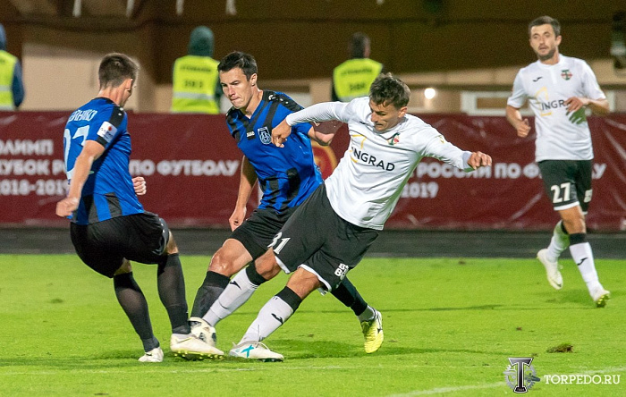 Сегодня, когда торпедовцы возглавляют турнирную таблицу, они по праву считались фаворитами встречи. И этот статус стали подтверждать, что называется, «с места в карьер». Наши футболисты старались, но жернова защиты москвичей перемалывали все их замыслы на дальних подступах к штрафной хозяев. Сами же автозаводчане очень настойчиво искали пути к воротам Антипина, причем активнее всего был их левый фланг, где неимоверно «зажигал» Илья Самошников. При этом первый гол в ворота нашей команды возник из атаки на правом фланге, где на отборе искусно сыграл Артур Галоян, навесил во вратарскую площадку, где Николай Покидышев в борьбе с Иваном Сергеевым закатил мяч в собственные ворота. К перерыву счет мог удвоиться, если бы Игорь Лебеденко, подловивший на ошибке Станислава Антипина, сумел с десяти метров закатить мяч в пустые ворота. Но он продемонстрировал куда более виртуозный удар, поразив стойку ворот.