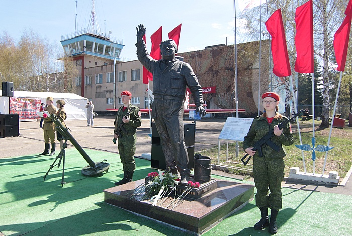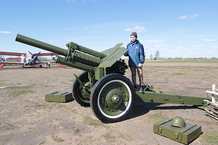 Ровно год назад на аэродроме состоялось знаковое событие – был открыт памятник «Макарыч», посвященный авиамеханикам Великой Отечественной войны. Прототипом стал актер Алексей Смирнов, сыгравший роль авиамеханика в фильме «В бой идут одни старики», но и сам воевавший на фронтах Великой Отечественной. Скульптор Елена Пасхина изобразила «Макарыча» провожающим пилотов на небесное сражение. А в этом году рядом с памятников появился миномет. Самый что ни на есть настоящий, из закромов министерства обороны РФ. Но, как и положено, демилитаризованный. На празднике на аэродроме еще стояла гаубица 122 мм, образца 1938 года, тоже демилитаризированная. Правда, гаубица уже в ближайшее время займет постоянное место в селе Толбухино, а вот миномет навсегда останется при Макарыче.